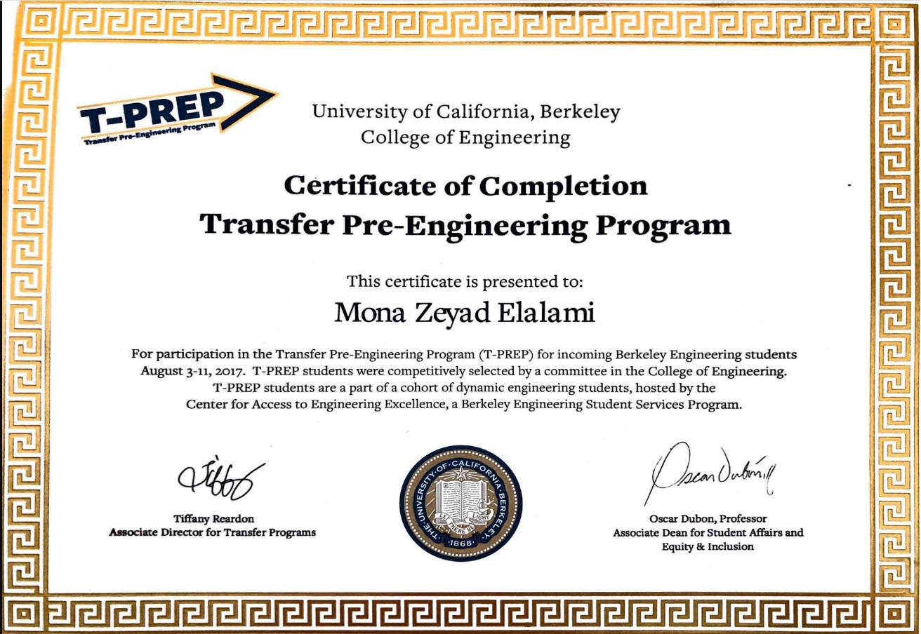 Completion of competitively selected, pre-engineering program for incoming Berkeley Engineering Students.